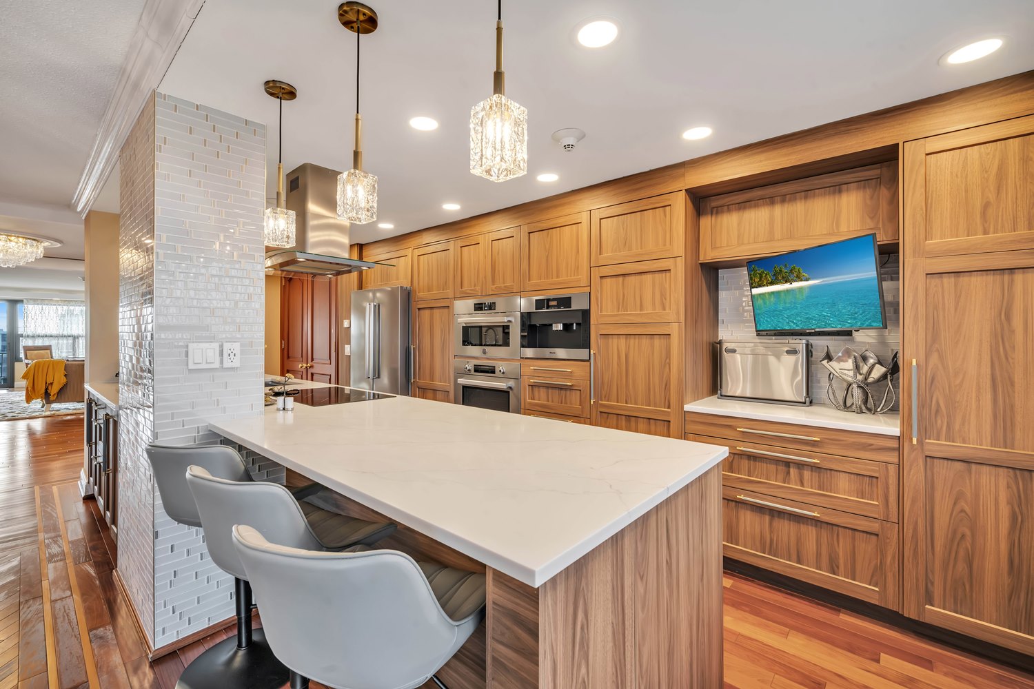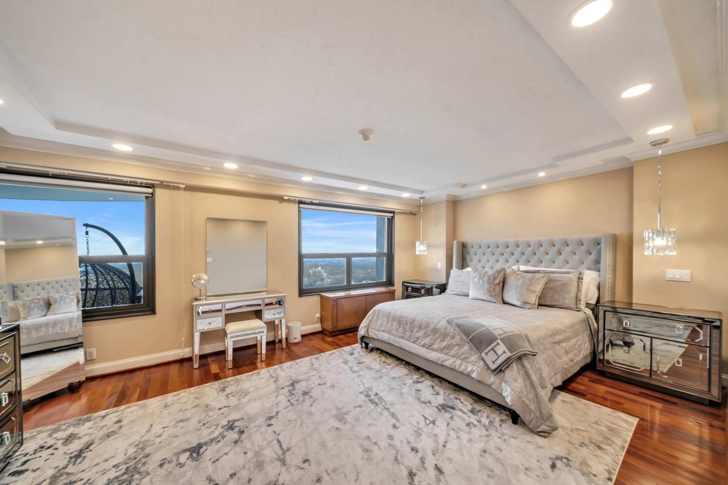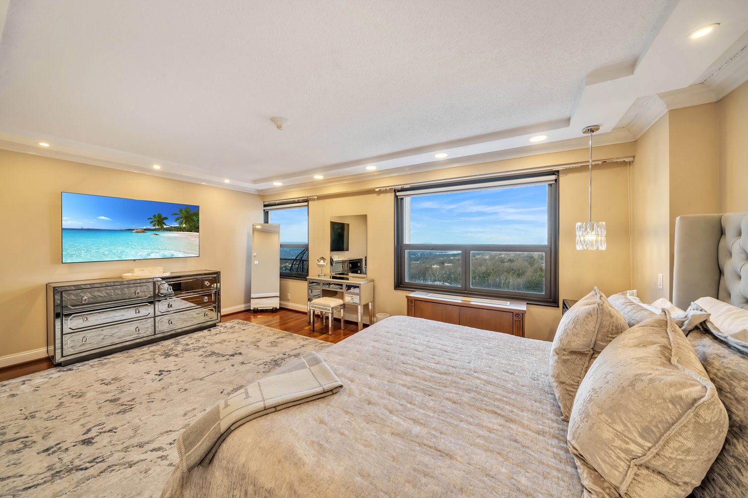 Experience elevated high-rise living in this builder’s own fully renovated 3-bedroom, 3 full bath luxury residence, where thoughtful design and modern sophistication meet breathtaking mountain views. Perched high above it all, this one-of-a-kind home showcases exceptional craftsmanship, custom finishes, and an abundance of natural light throughout. Walls of glass frame sweeping panoramic views, while the open-concept layout is perfect for both everyday living and entertaining. The designer kitchen features sleek finishes and refined details, seamlessly flowing into spacious living and dining areas. Generously sized bedrooms provide comfort and privacy, complemented by beautifully renovated, spa-inspired bathrooms. Step outside onto two private balconies, ideal for morning coffee, evening relaxation, or simply taking in the stunning scenery. Renovated as the builder’s personal residence, every detail reflects a rare level of quality and care. Residents enjoy resort-style amenities including a pool, fitness center, pickleball courts, concierge services, and beautifully maintained common areas, all conveniently located near premier dining, shopping, and transportation. A rare opportunity to own a move-in-ready home that redefines luxury high-rise living.